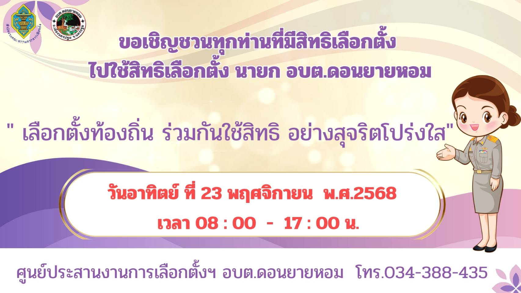ประกาศคณะกรรมการการเลือกตั้งประจำองค์การบริหารส่วนตำบลดอนยายหอม เรื่อง กำหนดจำนวน สถานที่ หลักเกณฑ์และวิธีการปิดประกาศและติดแผ่นป้ายเกี่ยวกับการหาเสียงเลือกตั้ง สมาชิกสภาองค์การบริหารส่วนตำบลดอนยายหอมและนายกองค์การบริหารส่วนตำบลดอนยายหอม