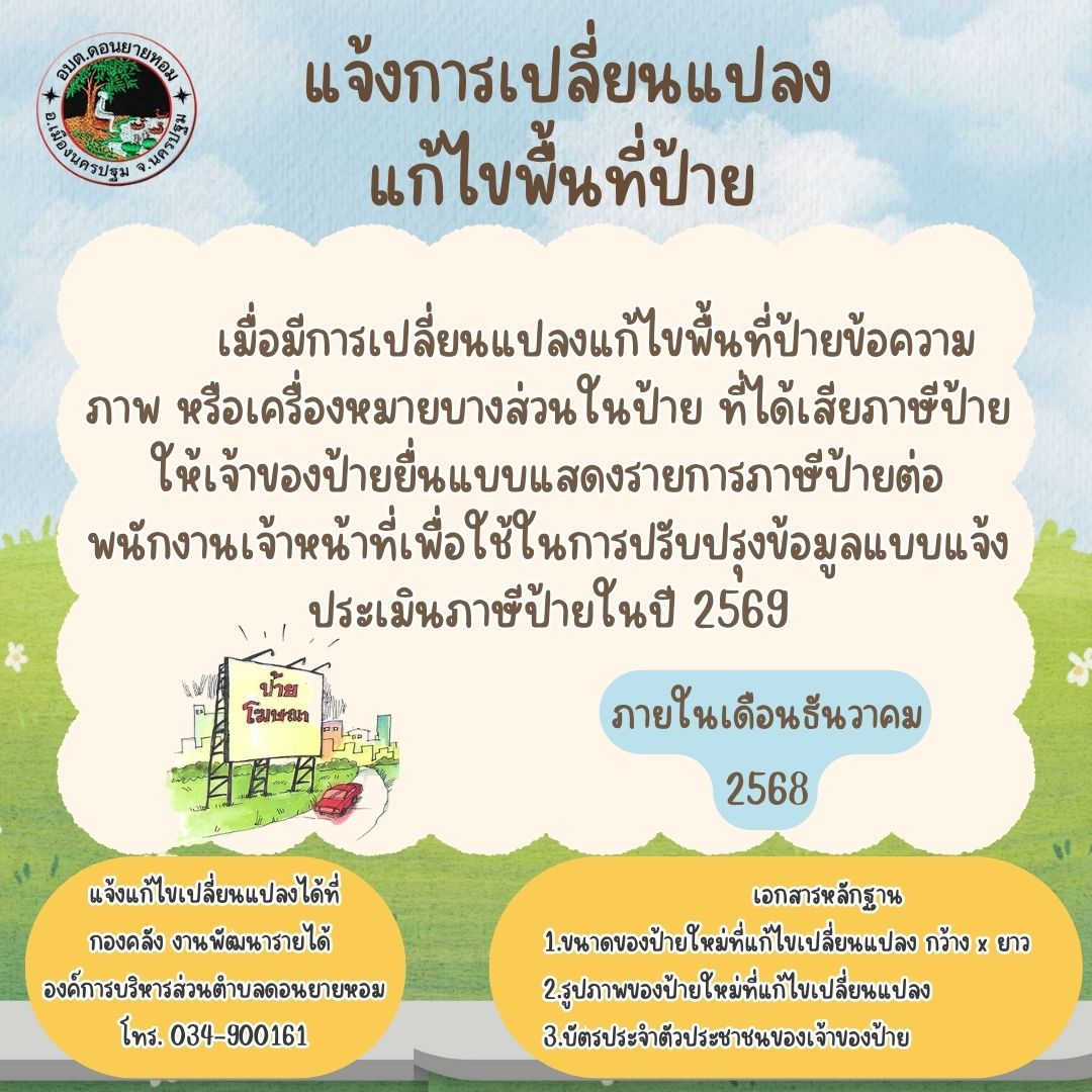 องค์การบริหารส่วนตำบลดอนยายหอม อำเภอเมืองฯ จังหวัดนครปฐม โทร. 0-3438-8435-6